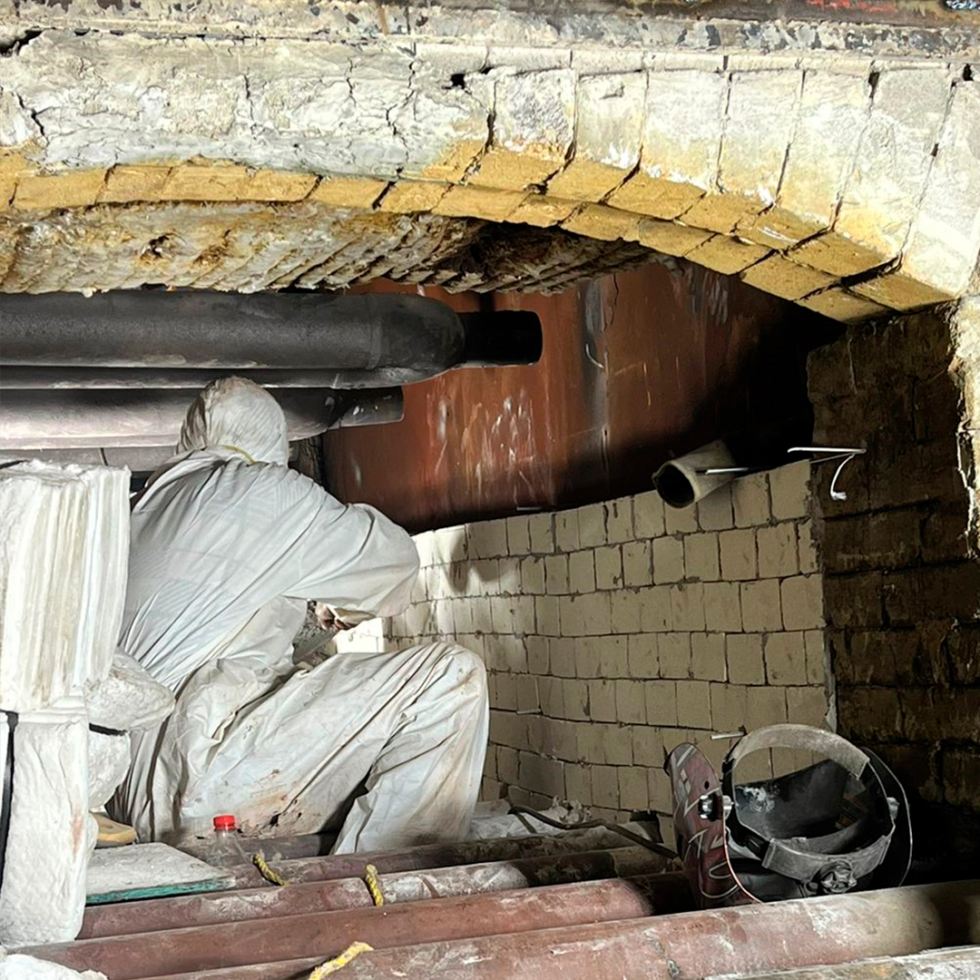Instalación de aislamiento térmico a base de fibra cerámica, ladrillo refractario, lana mineral o módulo aislante; para maximizar la retención de calor y la...